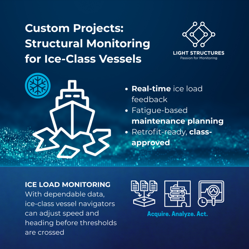 Unlike wave-driven stress loads, ice impacts are abrupt, concentrated, and potentially severe. Even vessels built to polar class standards can be caught off guard by a shifting ice field or an unexpected ridge. For shipowners, navies and coastguards, the ability to manage this risk in real time is essential. And it’s exactly what Light Structures’ SENSFIB ICE is designed to deliver.